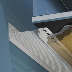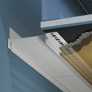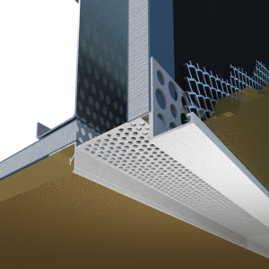 Perforated flange allow the base coat mixture to easily flow through and bond with the substrate.