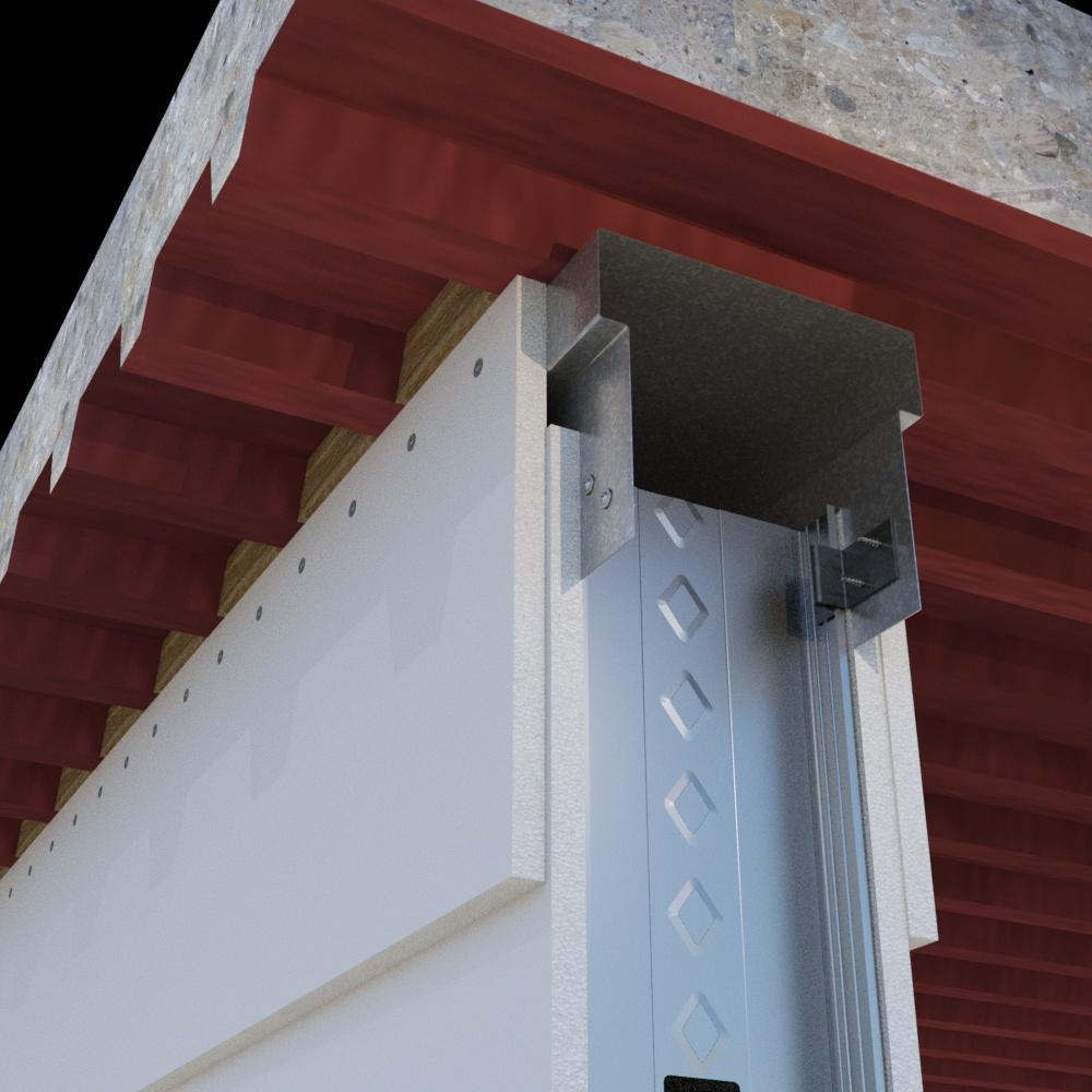 BlazeFrame RipTRAK is a deflection track with an offset shoulder that represents the thickness of the gypsum board (5/8" or 1-1/4”). A second piece of gypsum board (wall cladding strips) is fit flush to the underside of the slab (w/sealant) or to a fluted deck (without castle cuts & sealant), and is then fastened to the shoulder. This allows the roof/floor assembly and the BlazeFrame RipTRAK to move in relation to the wall assembly. This also allows the wall cladding strips (the rip board) that is attached to the BlazeFrame RipTRAK to slide over the primary wall assembly.