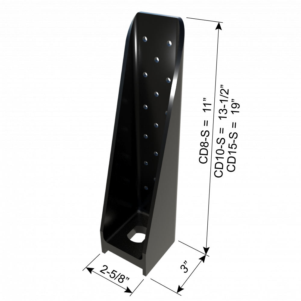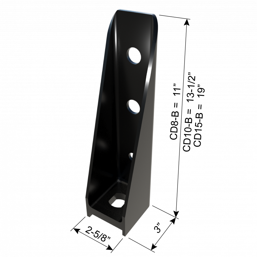 Anchor hole size:  7/8" x 1-1/8" for CD8-S, CD8-B, CD10-S and CD10-B;  1" x 1-1/8" for CD15-S and CD15-B