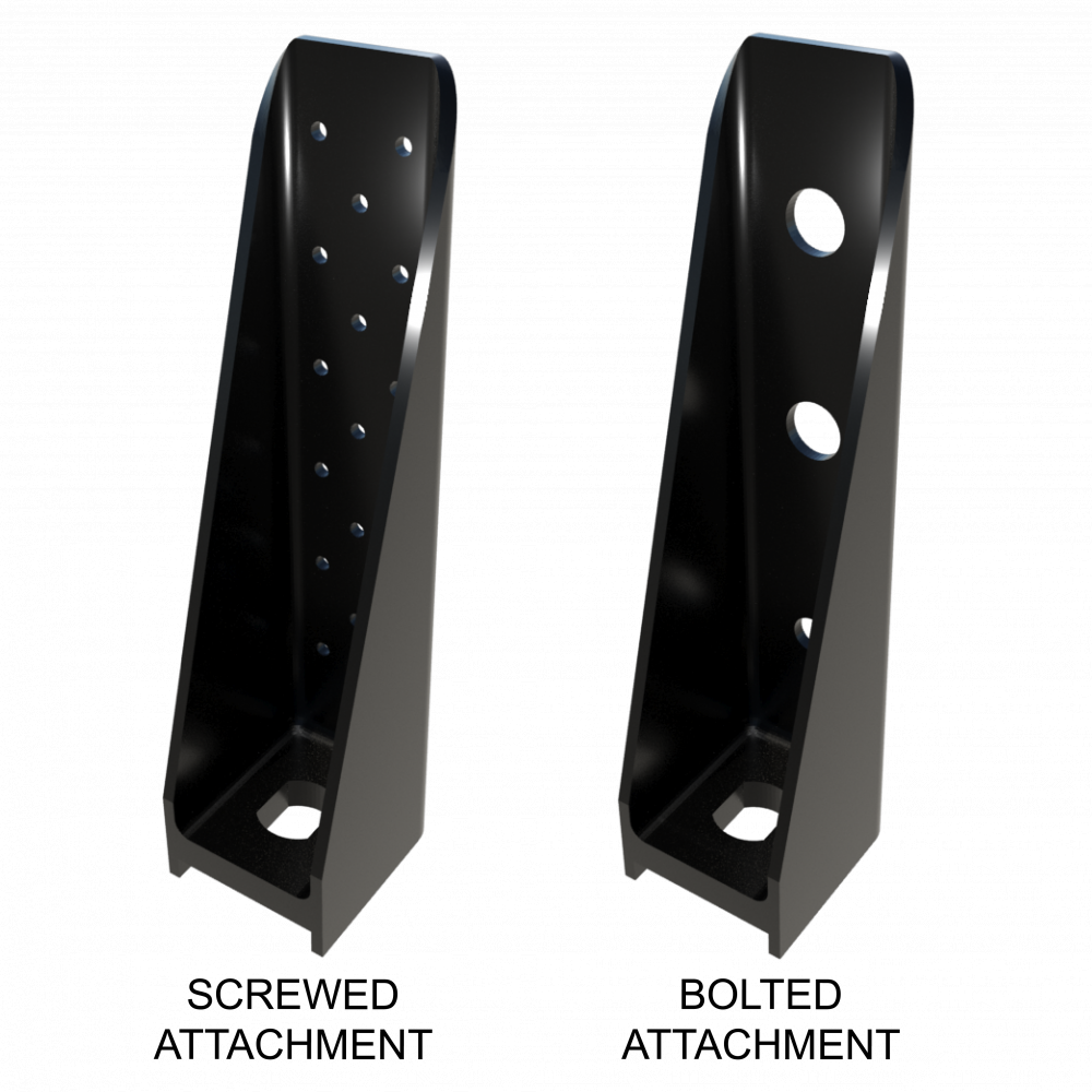 Two-piece welded construction comes in three sizes for optimal performance. Installation is made easy with prepunched bolt holes.