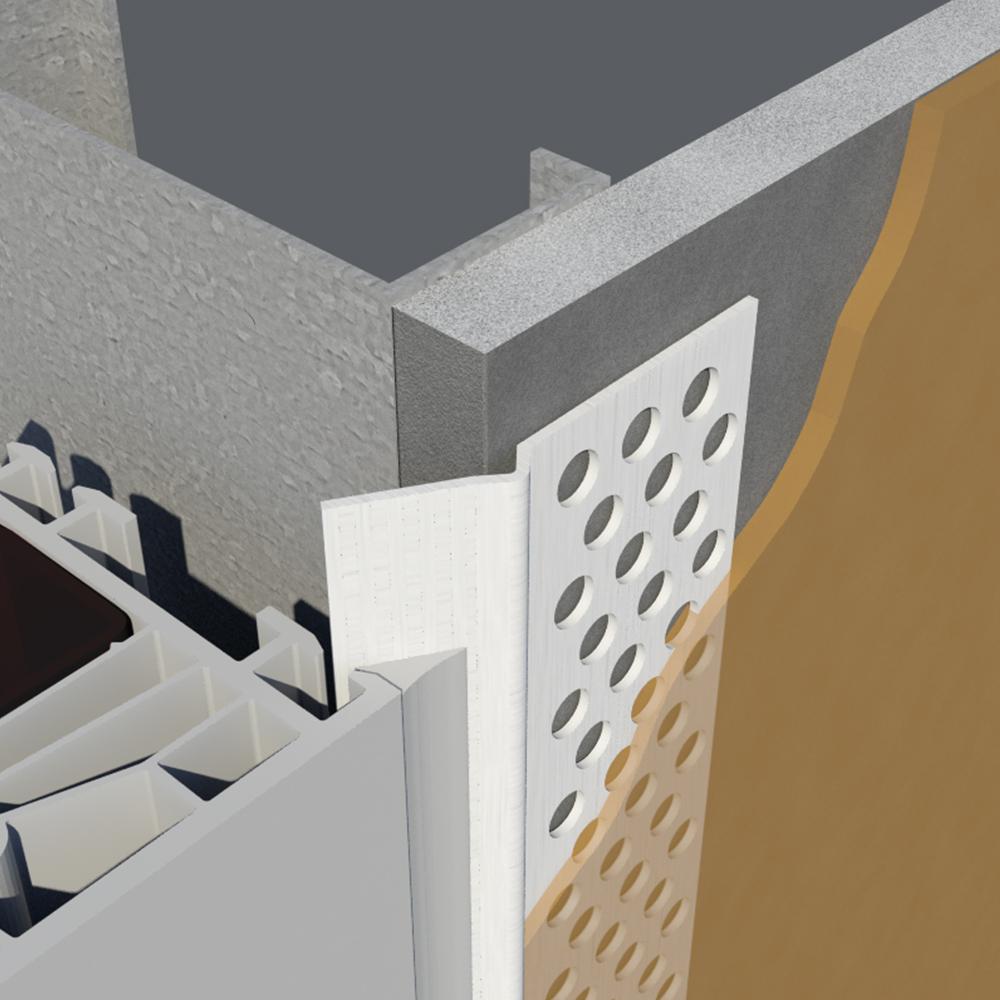 Designed to protect the raw edges of the board in Direct-Applied Exterior Finish Systems (DEFS). Large perforations allow the base coat mixture to easily flow through and bond to the substrate. Caulk all intersections, butt joints, ends, and corners at the time of installation.