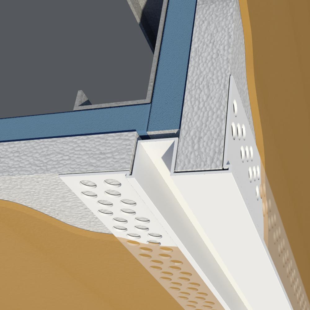 Used to direct moisutre away from the installation in EIFS and DEFS installations. Always use a rigid backing or blocking material behind surface mounted reveal.