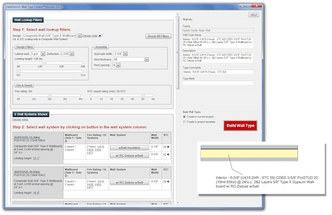 The ClarkDietrich Wall Type Creator is the first Revit® add-in design tool that intelligently incorporates detailed information on wall elements and design properties, such as UL assemblies based on fire rating requirements, STC sound ratings and limiting height design. This type of interactive platform, in which details have been linked together, is truly unparalleled and gives architects and contractors everything needed to successfully design even the most challenging wall assemblies.